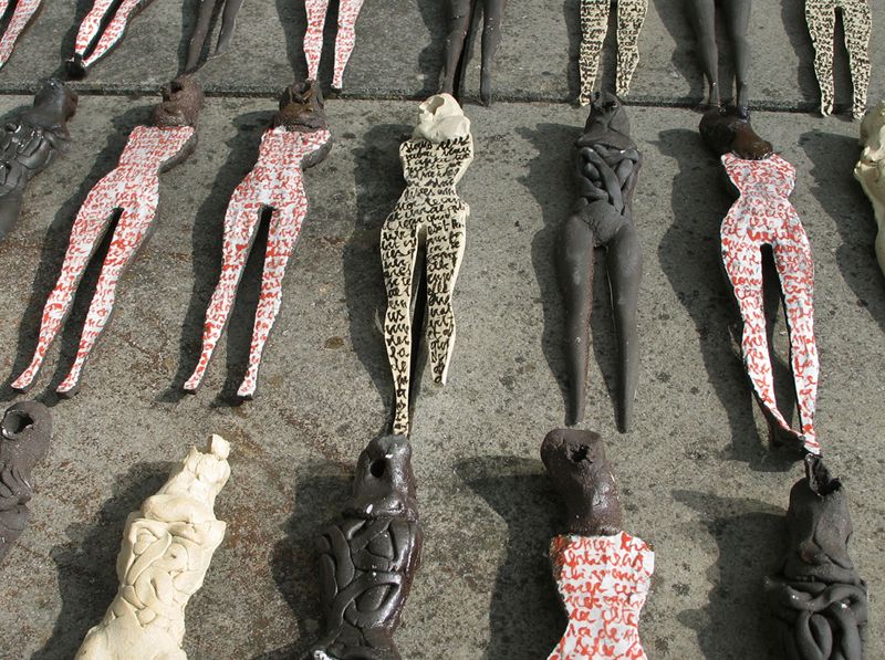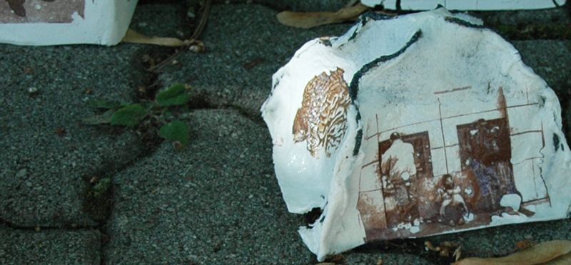 Des tentes igloos dans toute la France poussent, ce sont les logements de ceux qui n’en ont pas. Inspirée par les actions de l’association « Les enfants de Don Quichotte » j’ai créé des photophores en forme d’igloos avec des portraits de SDF imprimés. De simples feutrines trempées dans la porcelaine sur une armature de métal et qui dans leur transformation par le feu deviennent plus que fragiles, précaires. Je les ai posées au pied de la liberté de l’égalité et de la fraternité le jour de la nuit des musées, si fragiles que la moindre pression les brisent, elles deviennent un problème qu’on ne peut déplacer.